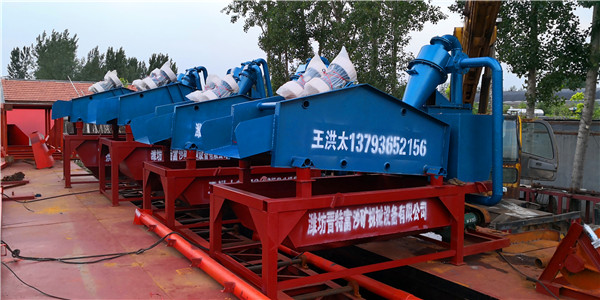 工作過程:泵將砂水混合物輸送至旋流器,離心分級(jí)濃縮的細(xì)砂經(jīng)沉砂嘴提供給振動(dòng)篩,經(jīng)振動(dòng)篩脫水后,細(xì)砂與水有效分離,少量細(xì)砂、泥等經(jīng)返料箱再回到清洗槽,清洗槽液面過高時(shí),經(jīng)出料口排出。直線振動(dòng)篩回收物料重量濃度為70%-85%。調(diào)節(jié)細(xì)度模數(shù)可通過改變泵轉(zhuǎn)速、改變砂漿嘗試、調(diào)節(jié)溢流水量、更換出砂嘴來實(shí)現(xiàn)。從而完成清洗、脫水和分級(jí)三種功能。