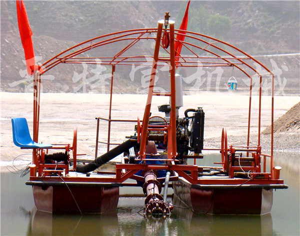 晉特富環(huán)??萍忌a(chǎn)的抽砂選鐵船,適用范圍廣,維修費(fèi)用低,是針對厚泥層抽沙選鐵的設(shè)備。1,產(chǎn)品結(jié)構(gòu):本設(shè)備有附體,主架,鉆桿,抽沙泵,高壓打水泵,控制箱,卷揚(yáng)機(jī),發(fā)電機(jī)組,磁選機(jī),平板磁選機(jī),發(fā)沖箱,尾礦輸送設(shè)備等組成。2,抽沙系統(tǒng):抽沙泵8吋-16吋,打水泵6吋-14吋,動力配電機(jī)或柴油機(jī),抽沙鉆桿,用鋼板工鋼焊接,強(qiáng)度大,鉆探深度3-100米,3,選礦設(shè)備:JTF-磁1530磁選機(jī)1-3臺,JTF-pb3040平板磁選一套,4,尾礦輸送設(shè)備:輸送帶,抽沙泵,二次挖斗,水洗輪,螺旋輸送機(jī),溜槽,任選其一。