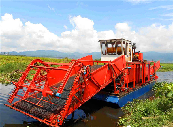 割草船是一種集割草、聚攏、打撈、濾水、輸送、卸載等于一體的現(xiàn)代化水草、水葫蘆收割設備。所有操作程序采用全液壓控制,簡單、方便、靈活,是城市水面景區(qū)不可或缺的保潔設備,也可作為垃圾清理船、湖面保潔船均收到良好的效果。